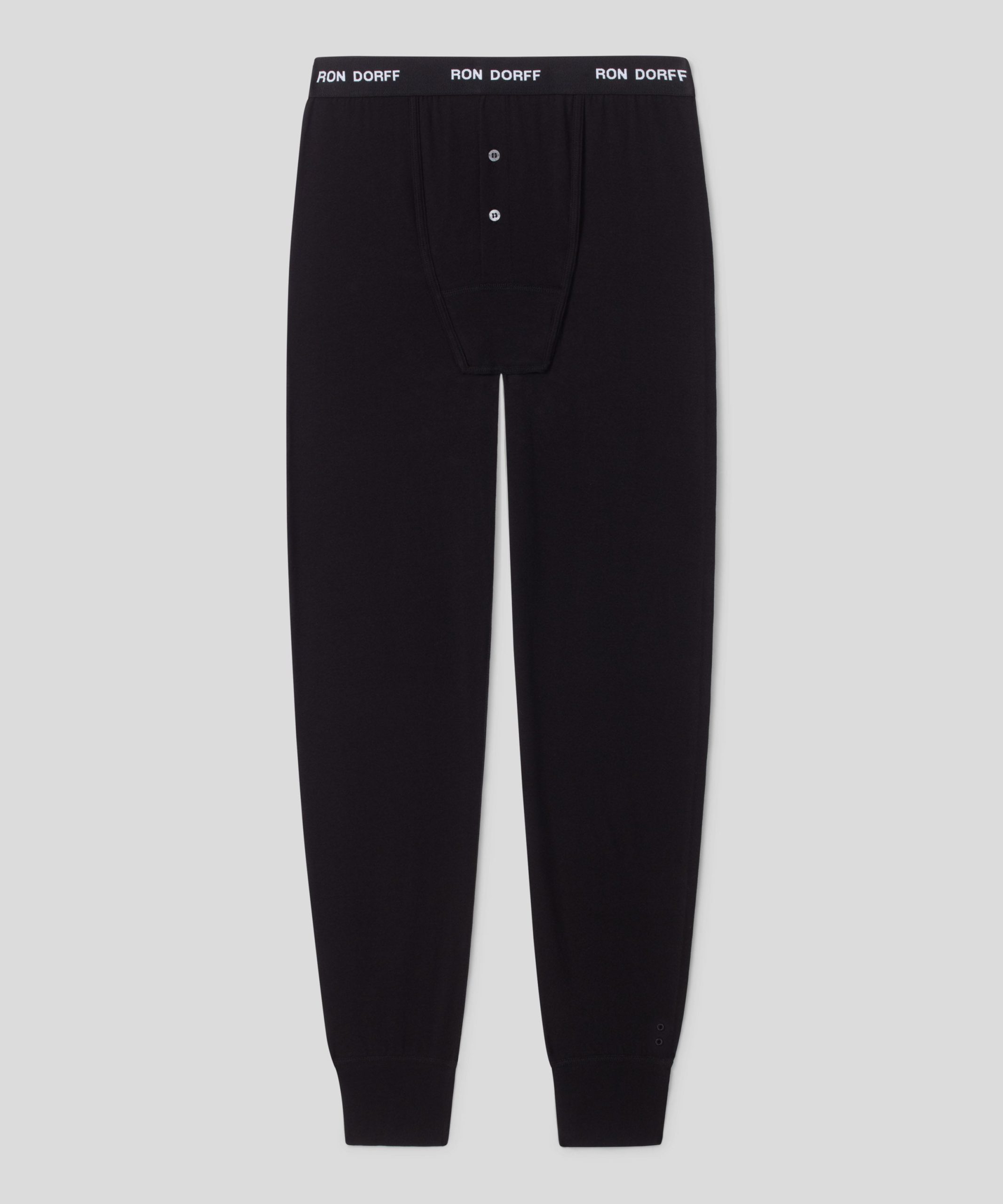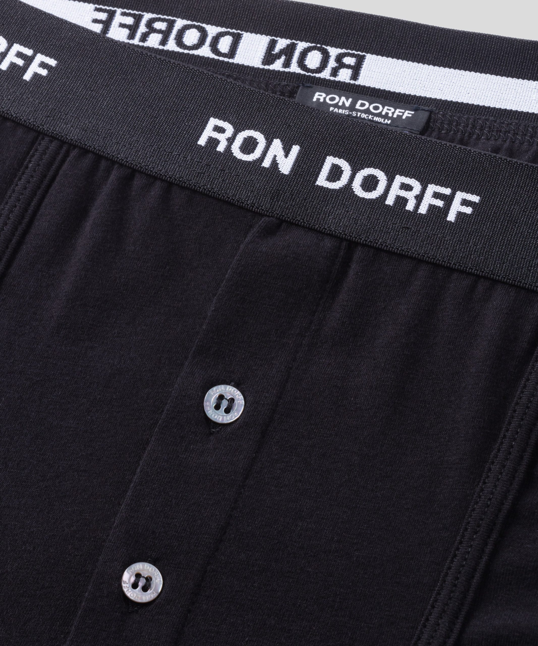 The legendary nordic ski underwear with a tailored and low-waist fit updated with an elastic waistband branded RON DORFF in black. Made in the finest jersey cotton with a hint of elastane for a guaranteed fit wash after wash. Two discrete, RD eyelets embroidered tone-on-tone on the ankle.