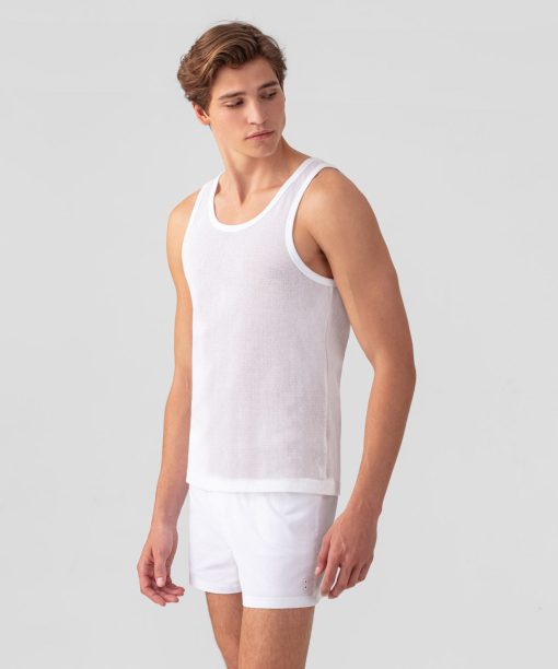 Ron Dorff Men’s Cotton Mesh Tank Top | White