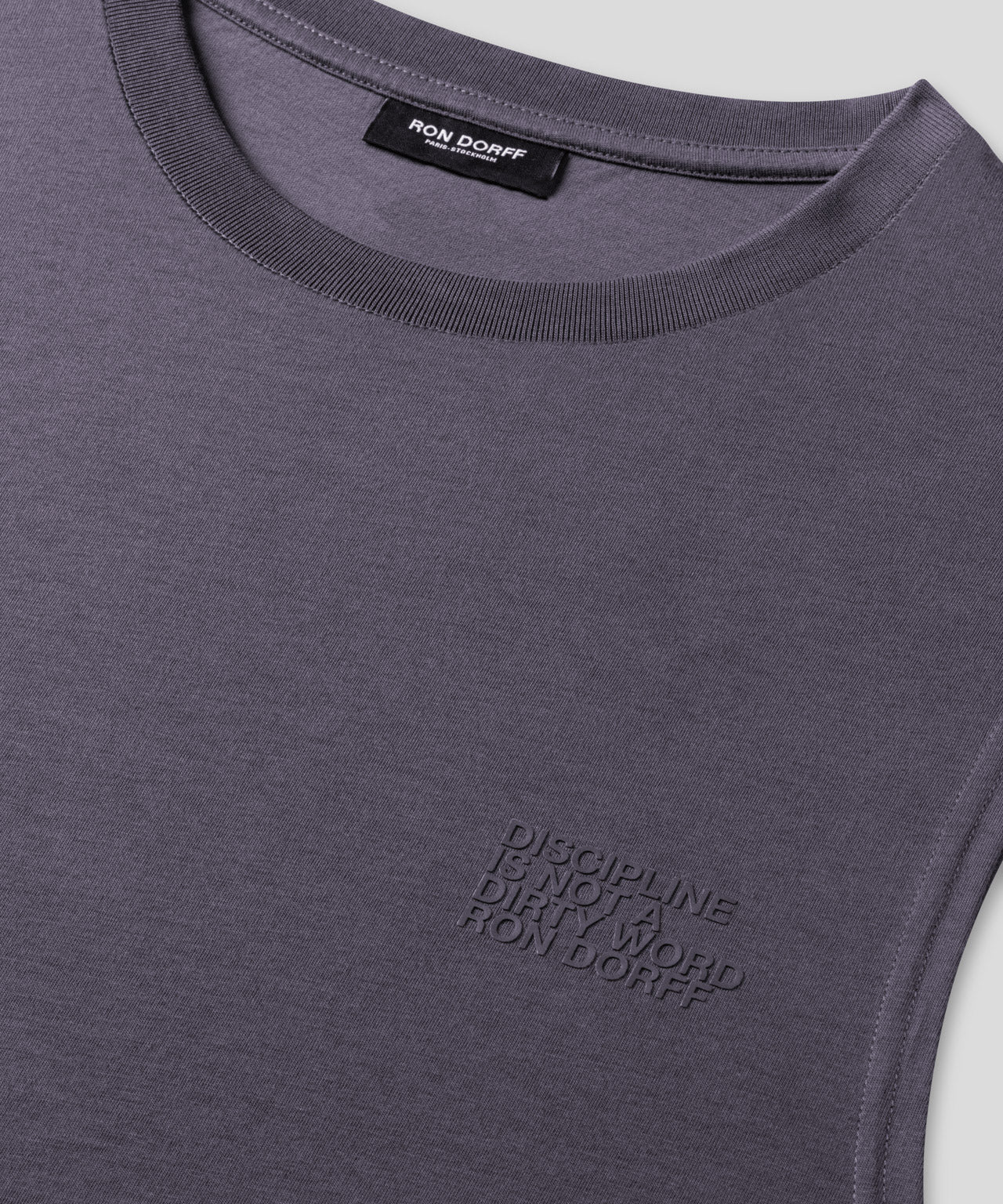 The cult sleeveless t-shirt of the 90s with the “DISCIPLINE” small print. Cut in a premium, 100% organic cotton jersey. Crew neck with neckband. Slightly tapered fit. Pre-washed for minimum shrinkage.