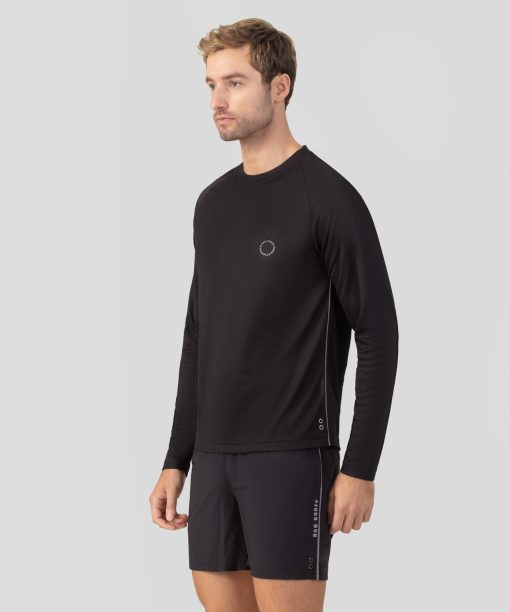 The new RON DORFF long-sleeve gym T-shirt, crafted from soft, natural-feel cotton-polyester piqué, features multiple technical properties and the “DRIRELEASE” label. The fabric was specially chosen to enhance your performance, thanks to its breathable nature, ultra-fast drying, odor-resistant, antistatic, and high abrasion-resistance properties. It is wrinkle-free, eco-friendly, and free from chemicals. Highlighted with flexible piping along the sides and a reflective print on the chest, this new T-shirt combines style and technical excellence.
