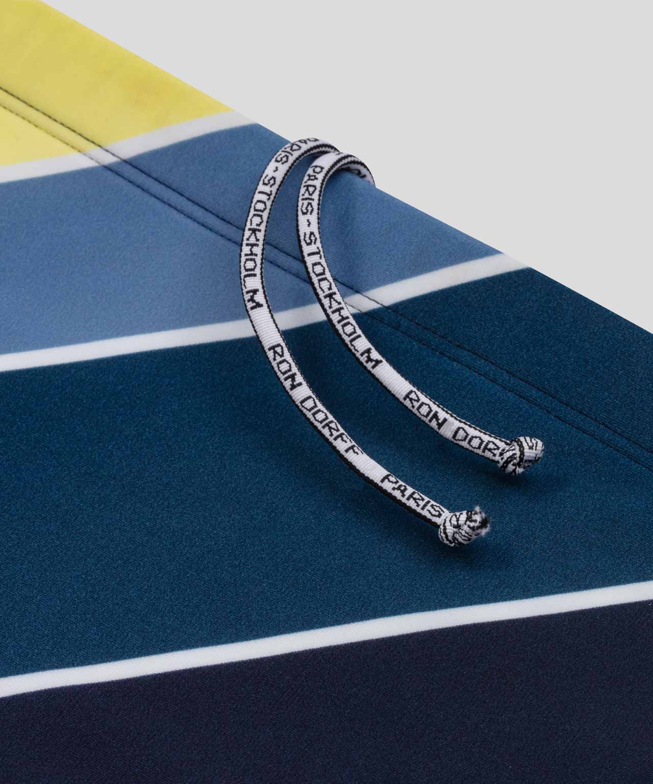 Inspired by the cult Brazilian water polo briefs of the early 80s, the swim briefs is revisited with printed diagonal stripes. Made in an extra-thick but quick-drying Italian-made polyamide for optimized silhouette and guaranteed fit swim after swim. Breathable micro-mesh lining. Elastic waistband with interior drawstring. Ideal for frequent pool use. Featuring the double black-lacquered RD signature eyelets.