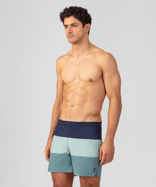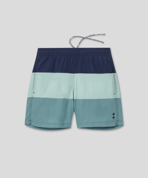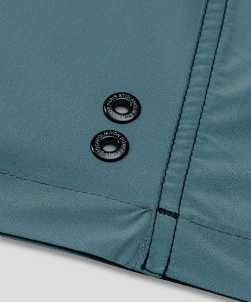 The new board shorts by RON DORFF inspired by the classic surfer shorts of the 80s with contrasting stripes. Revisited in fast-drying Italian recycled polyester, offering UV and chlorine protection. Breathable micro-mesh lining. Elasticated waistband and adjustable drawstrings for optimum comfort. Slightly longer cut than the classic RON DORFF Swim Shorts. Featuring the double black-lacquered RD signature eyelets on the side.