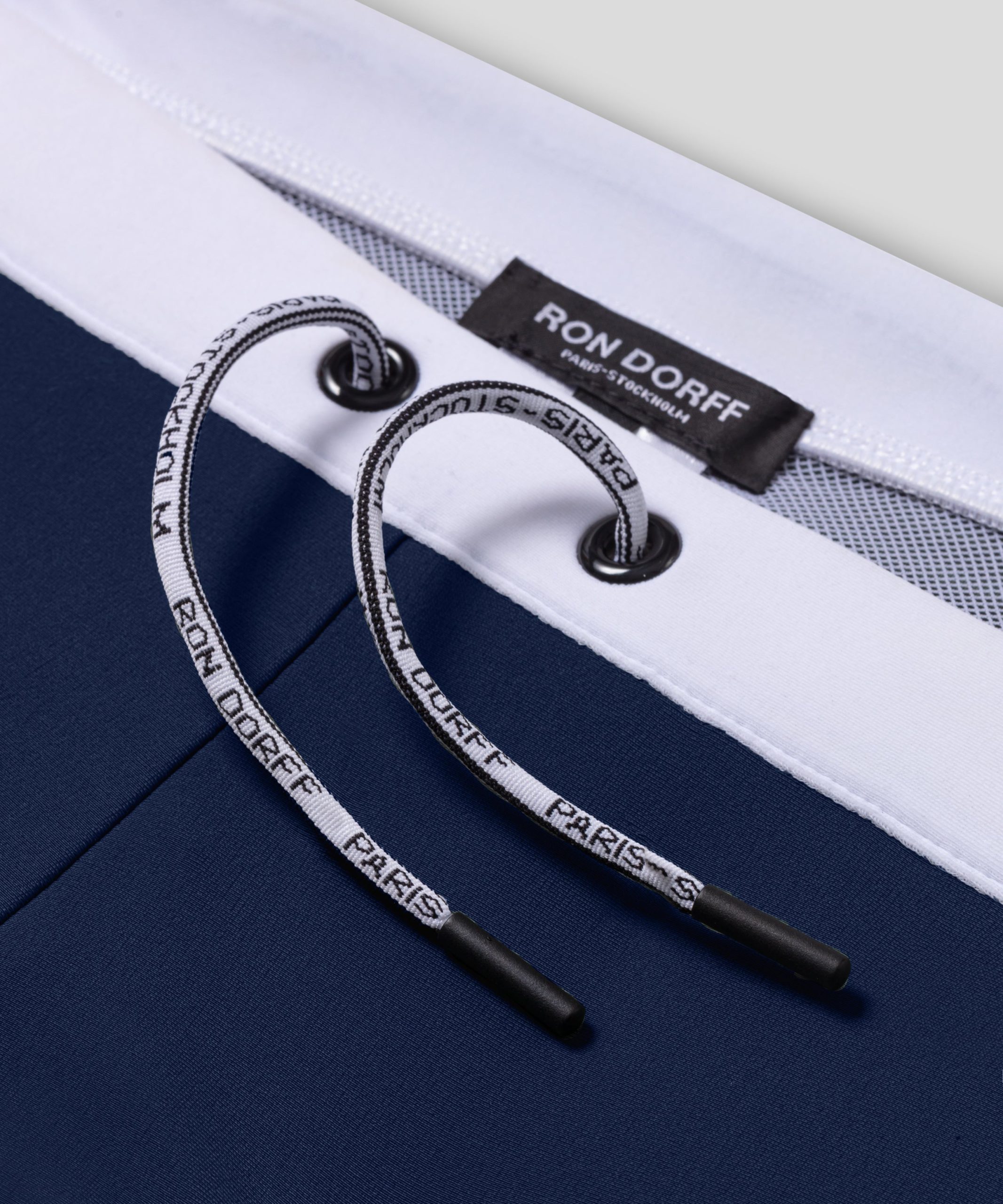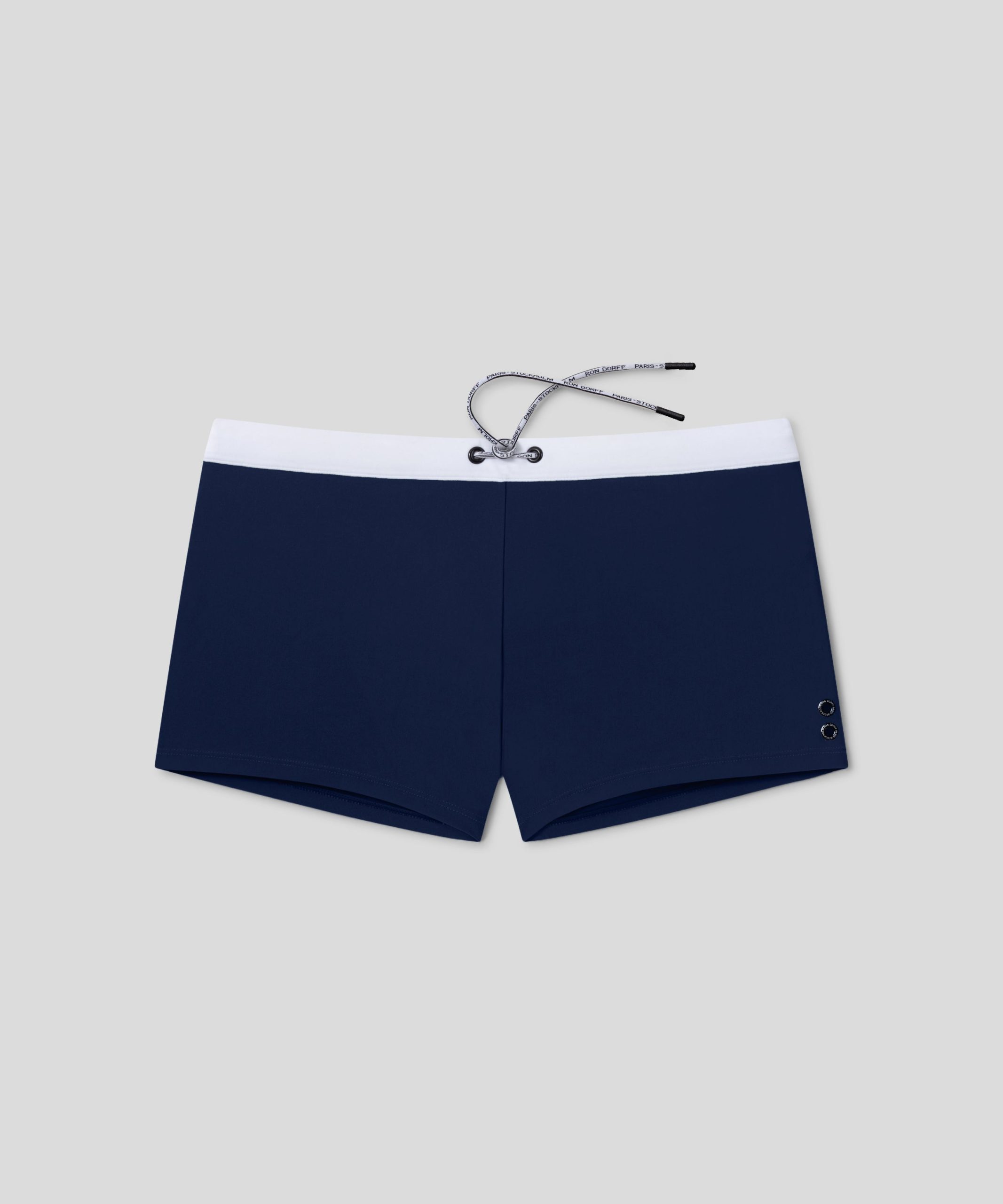 Inspired by a model worn on the French Riviera in the 80s as an alternative to the shorter Swim Briefs. Come with a white waistband for a retro look. Made in an extra-thick but quick-drying Italian-made polyamide for optimized silhouette and guaranteed fit swim after swim. Breathable micro-mesh lining. Ideal for frequent pool use. Elastic waistband with interior drawstring. Featuring the double black-lacquered RD signature eyelets on the side.