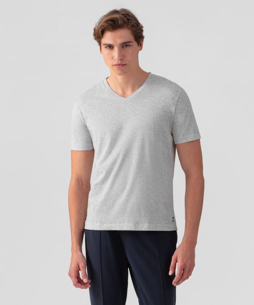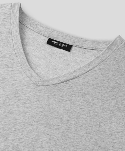 Ron Dorff Men’s V Neck T-shirt Eyelet Edition | Grey Melange